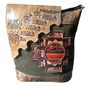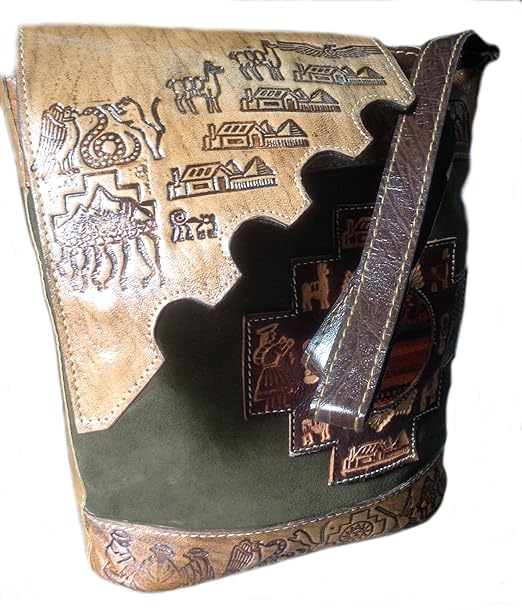 Handgefertigte echt Leder Tornister Handtasche aus Peru.
