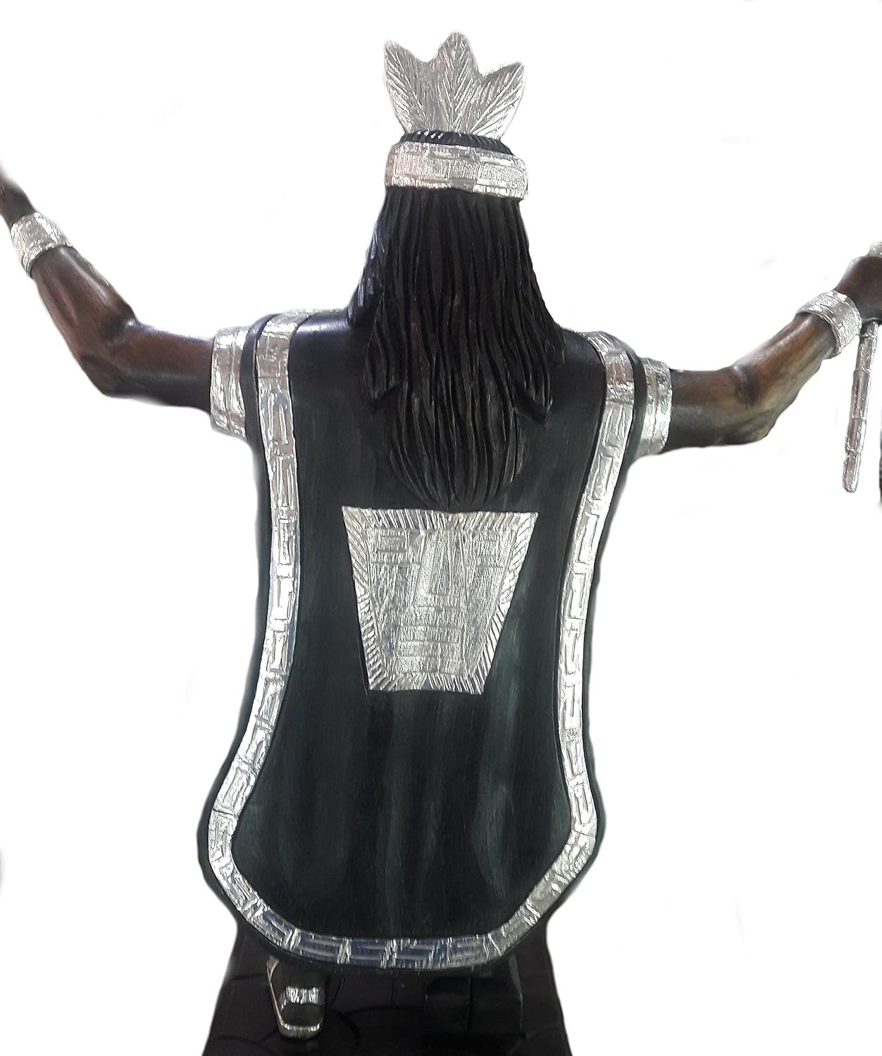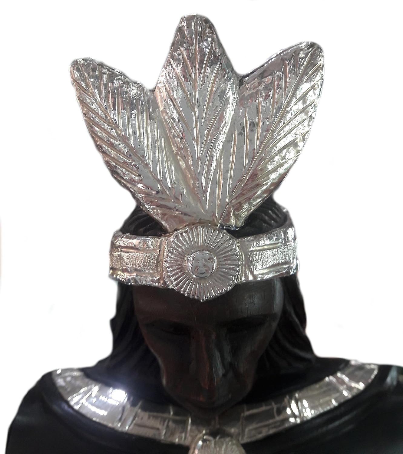 Die 40 cm grosse Figur ist handgeschnitzt und liebevoll mit 950er Silber gestaltet.