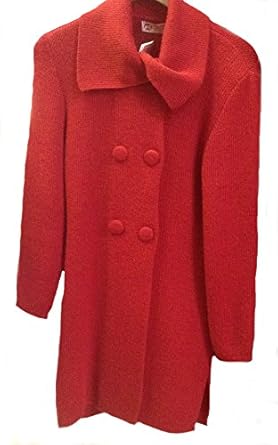 Roter eleganter Damen Strickmantel aus Alpakawolle.